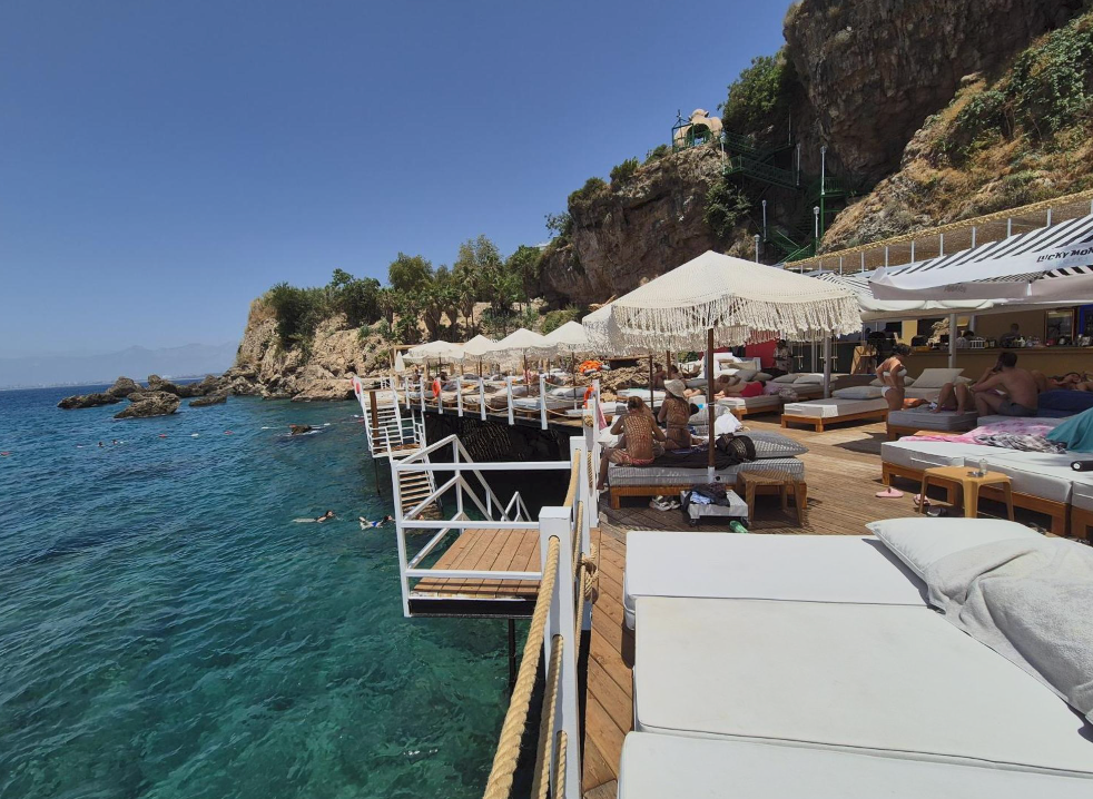 Falezlerin üzerine yapılan Lucky Monkey Otel'in plajı, belediyenin boşaltın talimatına rağmen faaliyetini sürdürüyor