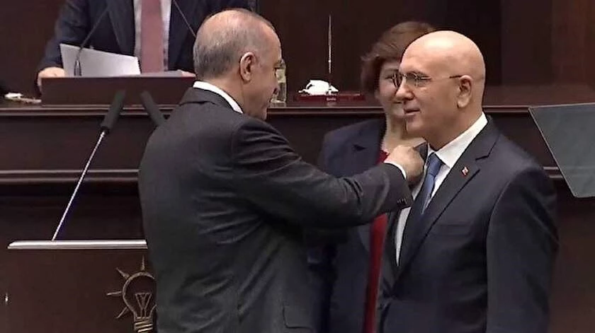Ok'un AK Parti rozetini Cumhurbaşkanı Erdoğan taktı.
