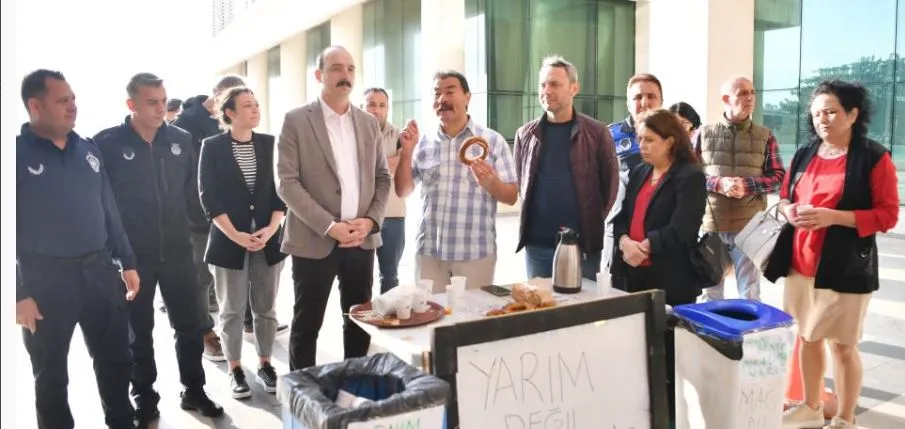 Önceki gün belediye personeli ile toplantı yaparak maaş ödemeleriyle ile ilgili açıklama yapan Başkan Cem Kotan, İller Bankası kesintisi sebebiyle tüm personele eşit maaş yatacağını duyurdu. Sabah saatlerinde TÜM BEL-SEN üyeleri Belediye Binası önünde yaşanan durumla ilgili “Yarım maaş yarım simit” eylemi gerçekleştirdi. Eyleme Başkan Kotan da destek verdi.