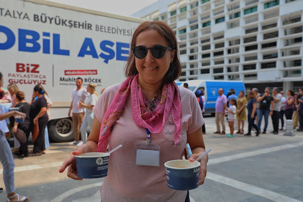 Antalya Büyükşehir Belediyesi, Muharrem ayı dolayısıyla merkez ve ilçelerde vatandaşlara aşure ikramını sürdürüyor. Büyükşehir Belediyesi önünde vatandaşlara ve personele 2 bin kişilik aşure ikram edildi.