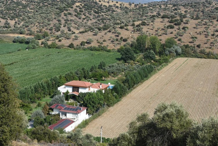 SABAH'ın çektiği fotoğraflarda villanın etrafından başka yapı bulunmazken, çevresindeki tarım arazileri dikkat çekiyor.