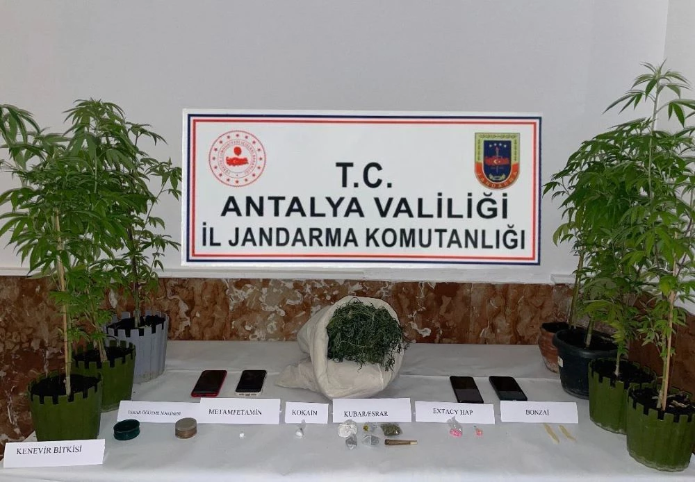 Antalya Valiliği İl Jandarma Komutanlığı ekiplerinin uyuşturucu madde imalatı ve ticaretine yönelik sürdürdüğü başarılı çalışmalar devam ediyor. Geçen hafta yapılan çalışmalar sonucu elde edilen bilgiler doğrultusunda harekete geçen jandarma ekiplerince pek çok aranan şahsa ve uyuşturucu kaçakçısına müdahale edildiği belirtildi.