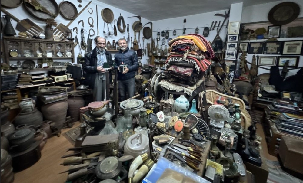 Taş el değirmeni, kömürlü ütü, gaz lambası, gaz ocağı, gece feneri, bakır kazan, tencere, tas, tava, ibrik, su küpleri, çanak-çömlek, beşik, elek, tırmık, kara saban, yayık, at ve eşek semeri, taş plak, gramofon, tüfek ve kılıç gibi 2 binden fazla çeşit eşya, sanat atölyesinin zemin katında oluşturulan mini etnografya müzesinde sergileniyor.