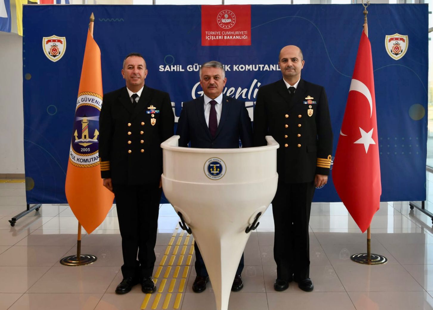 Antalya Valisi Ersin Yazıcı, Sahil Güvenlik Okul Komutanlığı’nı ziyaret ederek Mülki Makamlarla İlişkiler dersi kapsamında Sahil Güvenlik Temel Eğitiminde bulunan subay ve astsubaylara “Mülki Makamlarla İlişkiler ve Kamu Adabı” konulu konferans verdi. Sahil Güvenlik öğrencilerini tebrik eden Vali Yazıcı; “Bizlerin en önemli görevi halkımıza ve vatanımıza hizmet etmek. Hep birlikte Türk Milletine güven vermeye hainlere ve düşmanlarımıza korku salmaya devam edeceğiz.” dedi.