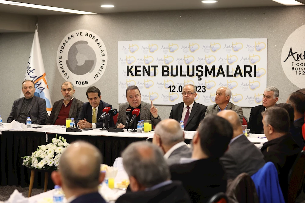 Antalya Büyükşehir Belediye Başkanı Muhittin Böcek, Antalya Ticaret Borsası’nın (ATB) düzenlediği 2023 yılının ilk Kent Buluşmaları Toplantısı’nın konuğu oldu. Antalya Ticaret Borsası (ATB) Başkanı Ali Çandır, ATB Meclis Başkanı Erdoğan Ekinci ve ATB üyelerinin katıldığı toplantıda hizmet ve projelerini anlatan Başkan Muhittin Böcek, soruları yanıtladı. Başkan Böcek, planlı, kurallı, kimlikli bir kent hedeflediklerini belirterek, geçtiğimiz haftalarda 80 projenin açılışını gerçekleştirdiklerini hatırlattı. Böcek, “Biz birlikte yaparız” anlayışıyla meslek odaları ve STK’ların görüşlerini alarak Antalya’yı ortak akılla yönetmeye çalıştıklarını dile getirdi. Geçen yıl 13 milyon 400 bin turist ağırlayan Antalya’da turizme alt yapısıyla, tanıtımıyla her türlü desteği verdiklerini ifade eden Başkan Muhittin Böcek, bu yıl başlayan konaklama vergisinden Antalya Büyükşehir Belediyesi’nin de pay alması gerektiğini bir kez daha yineledi.