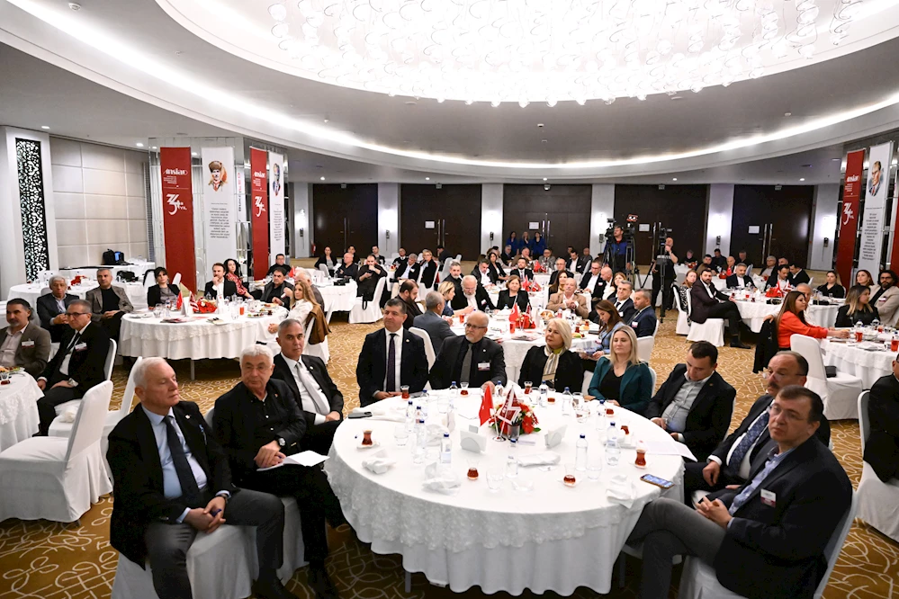 Konuşmaların ardından ANSİAD Başkanı Özbek, Başkan Böcek'e, sanatçı Tufan Dağıstanlı'nın seramik eserini hediye etti.