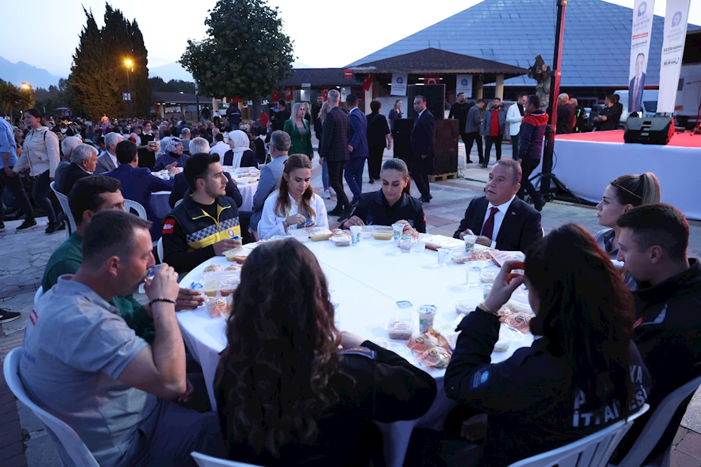 Antalya Büyükşehir Belediye Başkanı Muhittin Böcek, Büyükşehir Belediyesi personeliyle iftar sofrasında bir araya geldi. Antalya Kültür Merkezi Cam Piramit Kral Yolu’nda düzenlenen iftara personel ve ailelerin yanı sıra, şehit ve gazi aileleri, meclis üyeleri, muhtarlar, Antalya Büyükşehir Belediyesi bürokratları ve danışmanlar katıldı. İftar öncesinde ilahi dinletisinin gerçekleştiği iftarda, ezanın okunmasıyla birlikte Büyükşehir Belediyesi personeli oruçlarını açtı.