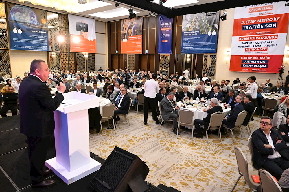 Antalya Büyükşehir Belediye Başkanı ve Başkan Adayı Muhittin Böcek, CHP İl Başkanı Nail Kamacı ve Antalya Milletvekili Sururi Çorabatır ile birlikte turizm sektörü temsilcileri ile iftar yemeğinde bir araya geldi. 5 yıllık görev süresi boyunca başta arıtmalar ve alt yapı yatırımları olmak üzere çevresel konulara da büyük önem verdiğini belirten Başkan Böcek, çevre odaklı turizm anlayışı ile Antalya’nın denizini, kumsalını, doğasını korumaya özen gösterdiklerini söyledi. Başkan Böcek, arıtmalara da ciddi bir yatırım yaptıklarını belirtti.