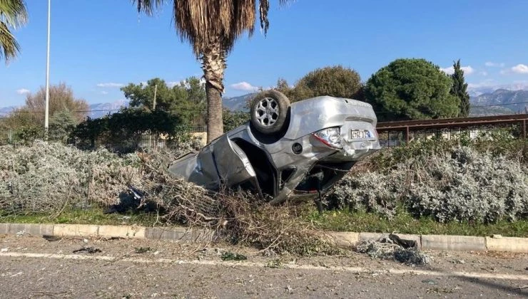 Antalya’nın Gazipaşa ilçesinde sürücüsünün direksiyon hakimiyetini kaybettiği otomobil, refüje çıkarak takla attı. Hurdaya dönen aracın sürücüsü, kazadan burnu kanamadan kurtuldu.