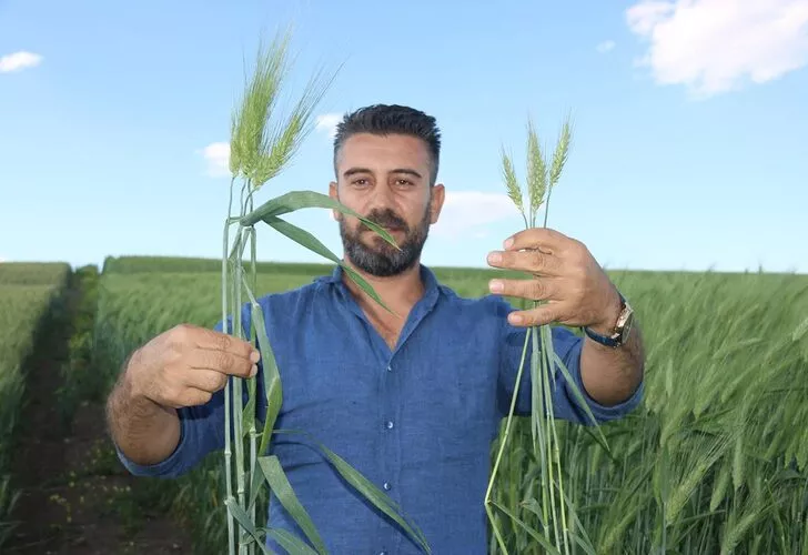 Yağışa göre nasıl çıkacaklarını görmek için ayrı ayrı yerlere ektik. 7 bin yıllık ata tohumu buğday, diğerlerine göre farklı, her başakta 250 ile 160 arası dane tutuyor, dekara bin 200 kilogram kuru olarak bekliyoruz, diğer buğdaylar ise yağışlar güzel olursa 450 kilogram geliyor.