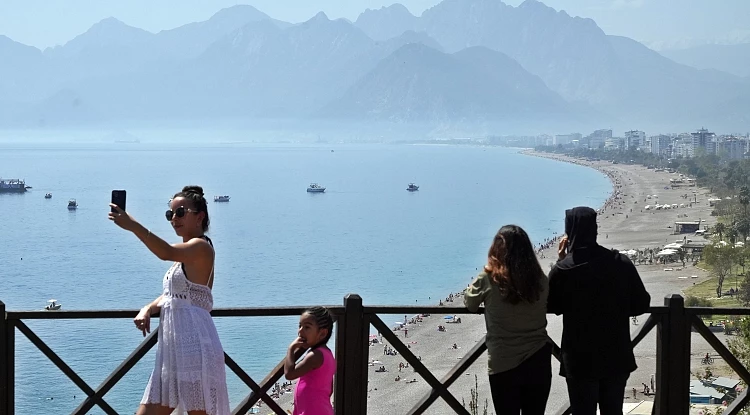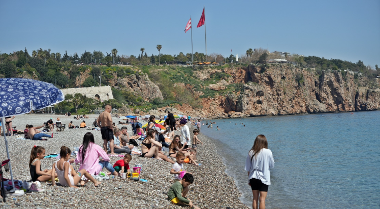 Turizmin başkenti Antalya'da yaz aylarını aratmayan bir görüntü oluştu. Düne nazaran 6 derece birden yükselen hava sıcaklığı termometrelere 32 derece olarak yansıdı. Nem oranının yüzde 67 ölçüldüğü kentte sıcaktan bunalan vatandaşlar ve turistler, dünyaca ünlü Konyaaltı Sahili'ne akın etti. Yaz aylarını aratmayan sahildeki kalabalık, Beydağları'ndaki kar manzarası eşliğinde bol bol güneşlendi ve denize girdi. Bazı vatandaşlar da ağaç gölgeleri altında yakıcı sıcaktan korundu. Varyantlar seyir terasına gelen turistler de iki mevsimin aynı anda yaşandığı anları fotoğraflayarak ölümsüzleştirdiler.