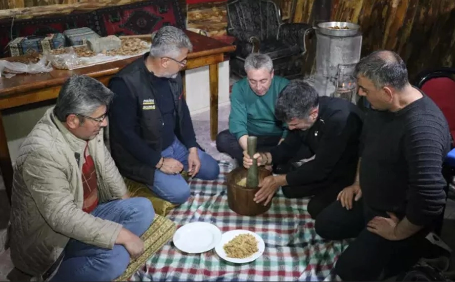 Serin ortamlarda aylarca dinlendirilen keş, kış mevsimi geldiğinde de sandıklardan çıkarılıyor. Keserle yontulan keşten çıkarılan parçalar, cevizle birlikte dibekte dövüldükten sonra soğuk kış gecelerinde çay eşliğinde tüketiliyor. Misafirlere ikram edilen bu özel tat, köy odalarında yapılan sohbetlerin ve akran buluşmalarının da önemli bir parçası oluyor.