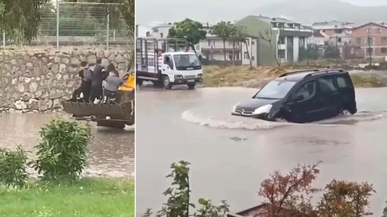 Kocaeli'de öğleden sonra başlayan sağanak yağış, Körfez ve Derince ilçelerinde sele döndü. Dereler taştı, otomobiller yollarda güçlükle ilerledi.