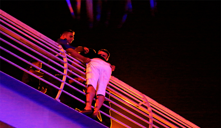 Antalya Büyükşehir Belediyesi İtfaiye Daire Başkanlığı'na bağlı ekipler de şahsın bulunduğu noktaya olumsuz bir duruma karşı şişme yatağı yerleştirdi. Polis ekiplerinin ikna çabalarına karşılık vermeyen M.Y.'yi yakınları ile görüştürmek için bir polis memuru telefonunu verdi. Polis memurundan telefonu alan ve bir süre konuşan M.Y. telefonu geri uzattığı sırada polis ekipleri tarafından yaka paça tehlikeli alandan alındı. Kelepçelenerek üst geçitten indirilen Mert Y. ifadesi alınmak üzere polis merkezine götürülürken, yol yeniden araç trafiğine açıldı.