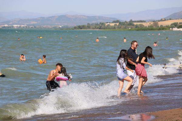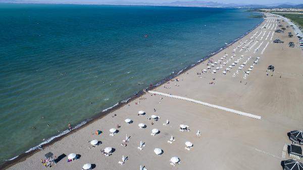 Konya Ovası'ndaki Beyşehir Gölü sahili, Akdeniz sahillerini aratmıyor. Karaburun Plajı'na gelenler, gölde yüzüp sahilde güneşleniyor. Kocaeli'den gelen Kübra Deniz, 'Sosyal medyada gördüm ve Gebze'den geldim. Antalya'dan daha iyi diyebilirim plaj olarak. Burası Konya'nın denizi' dedi.
