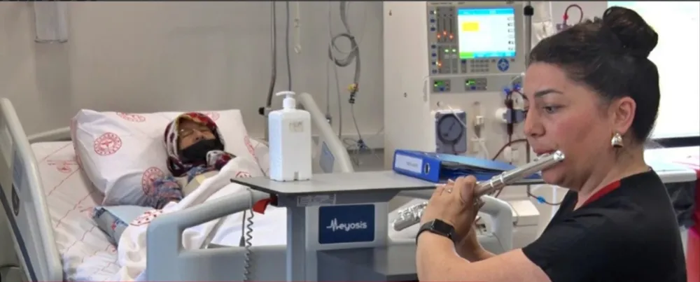 Antalya Döşemealtı Devlet Hastanesi'nde tedavi gören diyaliz hastalarına moral desteği sağlanıyor. Uzun süreli tedavi süreçlerinde ihtiyaç duyulan motivasyon, sağlık çalışanı hemşirenin gerçekleştirdiği yan flüt konseriyle hastalara ulaşıyor.