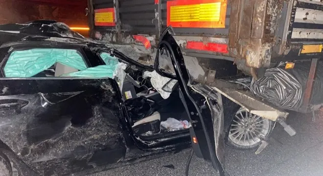 Kazanın şiddetiyle dorsenin altına giren lüks otomobil sürücüsü Bayram Y. ve araçta yolcu olarak bulunan Timurtaş A. (31) araç içerisinde sıkışarak yaralandı.