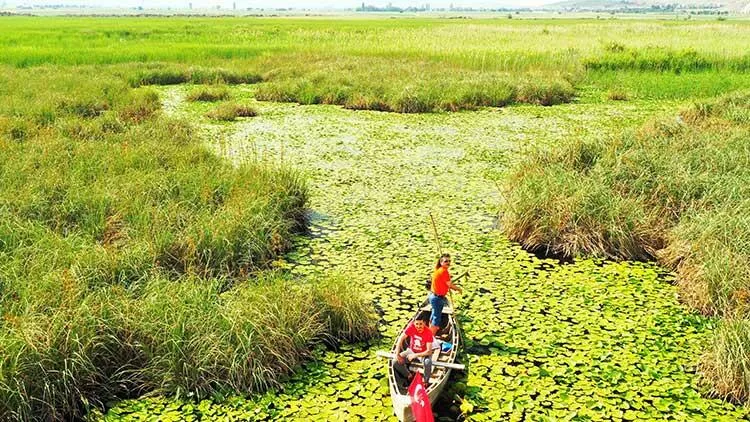 Büyük Menderes Nehri'nin doğduğu Dinar ilçesinde yer alan Eldere Gölü'nde (Karakuyu Gölü), havanın ısınmasıyla nilüferler çoğaldı. Sucul otların arasında nilüfer çiçekleri açtı.