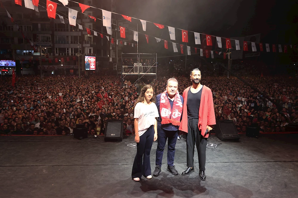 Konuşmaların ardından sahneye ünlü pop müzik sanatçısı Tan Taşçı çıktı. Başkanı Muhittin Böcek, günün anısına Tan Taşçı’ya, Atatürk tablosu ve çiçek takdim etti. /VARIŞ HABER