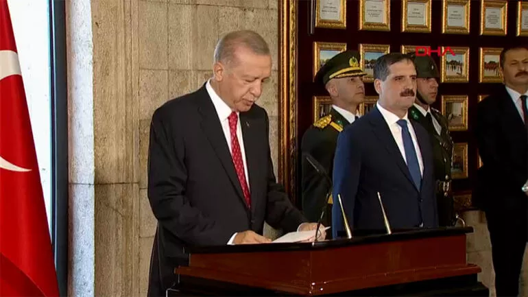 Cumhurbaşkanı Erdoğan, Atatürk'ün mozolesine çelenk bıraktı, saygı duruşunda bulunuldu ve İstiklal Marşı okundu.