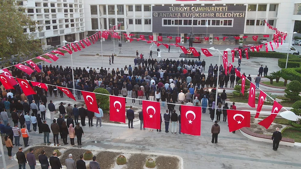 Antalya Büyükşehir Belediyesi İlçe Hizmet Birimlerinde ve ASAT Genel Müdürlüğü’nde de 10 Kasım nedeniyle saat 09.05’te saygı duruşunda bulunuldu. /VARIŞ HABER