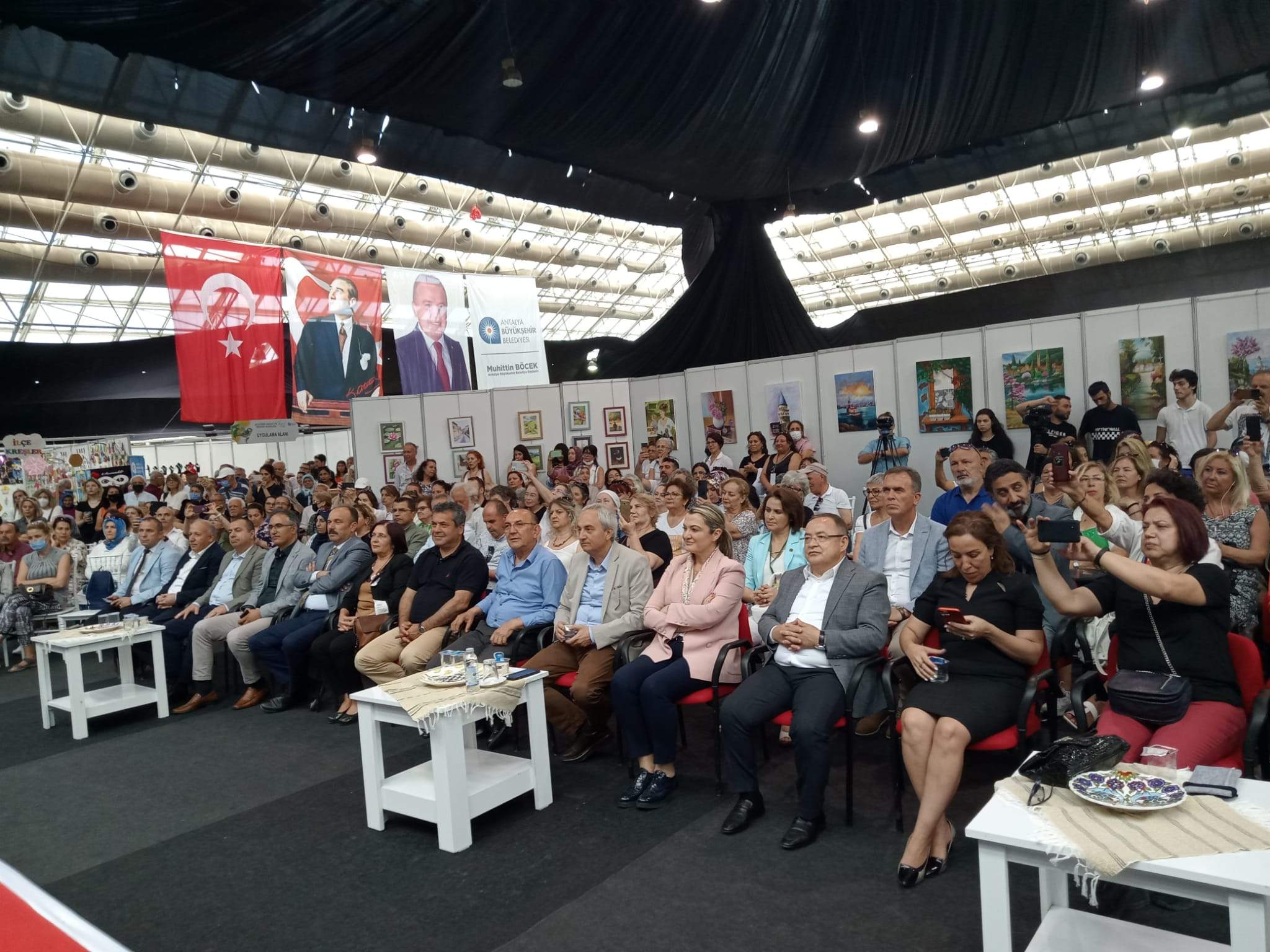 Antalya Büyükşehir Belediyesi Atatürk Sanat Eğitim Merkezlerinde (ATASEM) eğitim gören kursiyerlerin yıl boyu hazırladıkları el emeği ürünler, 15. Yıl sergisiyle Antalyalıların beğenisine sunuldu. Açılışa, CHP İl Başkanı Nuri Cengiz, İYİ Parti İl Başkanı Mehmet Başaran, CHP Kadın Kolları İl Başkanı Nilüfer Deveci katıldı.