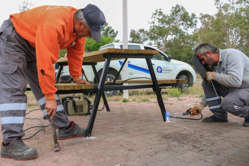 Deniz ve piknik yapma imkanının bir arada olduğu Lara Birlik Halk Plajı mesire alanında bulunan, kış aylarının olumsuz etkileri ile deforme olan banklar ve piknik masaları değiştirildi. Park ve Bahçeler Dairesi Başkanlığı'nın atölyesinde üretilen yeni bank ve piknik masaları yerlerine monte edilerek vatandaşların kullanımına sunuldu.