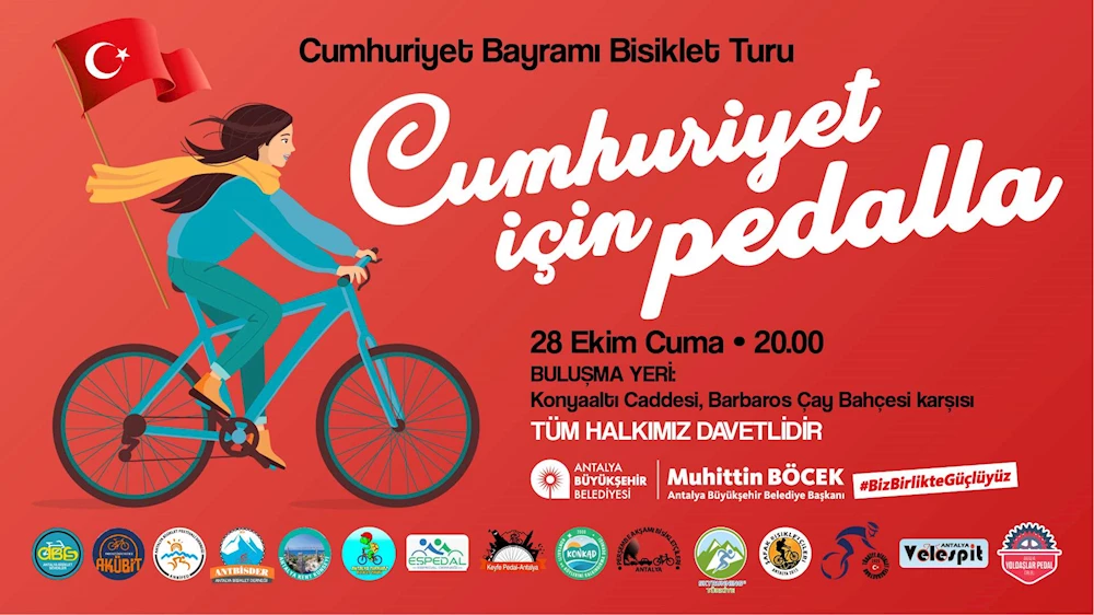 Cumhuriyet Bayramı Bisiklet Turu’na; Akübit ,Bisiklet Federasyonu İl Temsilciliği , Antalya Kent Konseyi, ABS (Antalya Bisiklet Sevenler Grubu), Antalya Turkuaz Bisiklet, Pab, Konkad, Keyfe Pedal, Eş Pedal, Antbisder, Velespit, Anbifed, Skyrunning, Antalya Yoldaşlar Pedal Grubu, Şafak Bisiklet Grubu üyeleri ve vatandaşlar katılım sağlayacak.