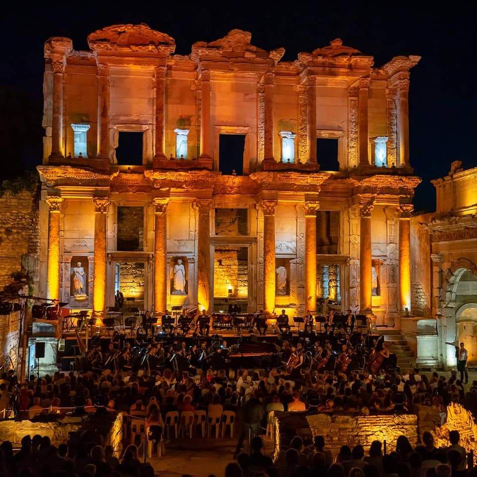 İzmir Kültür Sanat ve Eğitim Vakfı’nın (İKSEV) düzenlediği 35. Uluslararası İzmir Festivali, dün gece Efes Celsus Kütüphanesi’nde Tekfen Filarmoni Orkestrası ve piyanist Can Çakmur’u ağırladı. Tekfen Vakfı İşbirliği ile gerçekleştirilen konserde daimi şefleri Aziz Shokhakimov yönetimindeki Orkestra, üstün performansı ile göz doldururken, 35. Uluslararası İzmir Festivalinin unutulmayacak konserlerinden birine imza attı. Konseri, çok sayıda yerli ve yabancı sanatsever izledi.