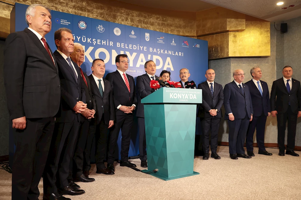 Bugüne kadar birçok farklı ilde biraraya gelen Cumhuriyet Halk Partili 11 Büyükşehir Belediye Başkanı “Büyükşehir Belediye Başkanları Buluşması”nın 39’uncusunu Konya’da gerçekleştirdi. Buluşmaya Antalya Büyükşehir Belediye Başkanı Muhittin Böcek,İstanbul Büyükşehir Belediye Başkanı Ekrem İmamoğlu, Ankara Büyükşehir Belediye Başkanı Mansur Yavaş, İzmir Büyükşehir Belediye Başkanı Tunç Soyer, Adana Büyükşehir Belediye Başkanı Zeydan Karalar, Mersin Büyükşehir Belediye Başkanı Vahap Seçer, Hatay Büyükşehir Belediye Başkanı Lütfü Savaş, Aydın Büyükşehir Belediye Başkanı Özlem Çerçioğlu, Tekirdağ Büyükşehir Belediye Başkanı Kadir Albayrak, Muğla Büyükşehir Belediye Başkanı Osman Gürün ve Eskişehir Büyükşehir Belediye Başkanı Yılmaz Büyükerşen katıldı.