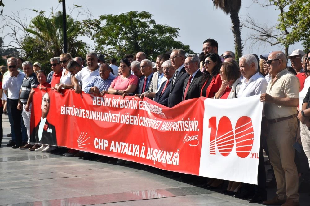 CHP’nin 100. Yıldönümü Antalya’da da kutlandı. Cumhuriyet meydanında çelenk sunumunun ardından CHP İl Sekreteri Füsun Çevik Karaman eş zamanlı olarak yaptığı açıklamasında, “Bir milletin esaretten kurtuluşuna ve bir ülkenin baştan aşağı yeniden kuruluşuna öncülük etmiş bir partinin, mirasını bir asra dayamış bu şerefli demokrasi mücadelesinin parçası olmaktan mutluluk duyuyoruz” dedi.