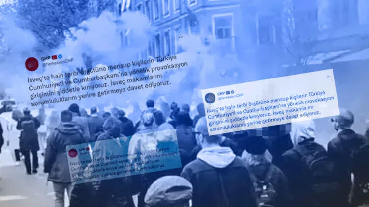 CHP'nin resmi sosyal medya hesabından yapılan paylaşımda, Stockholm'de tarihi belediye binası önünde toplanan bir grup terör örgütü PKK/YPG destekçisinin, Cumhurbaşkanı Recep Tayyip Erdoğan'a benzetilen bir kuklayı, binanın önündeki direğe asmasına tepki gösterildi.