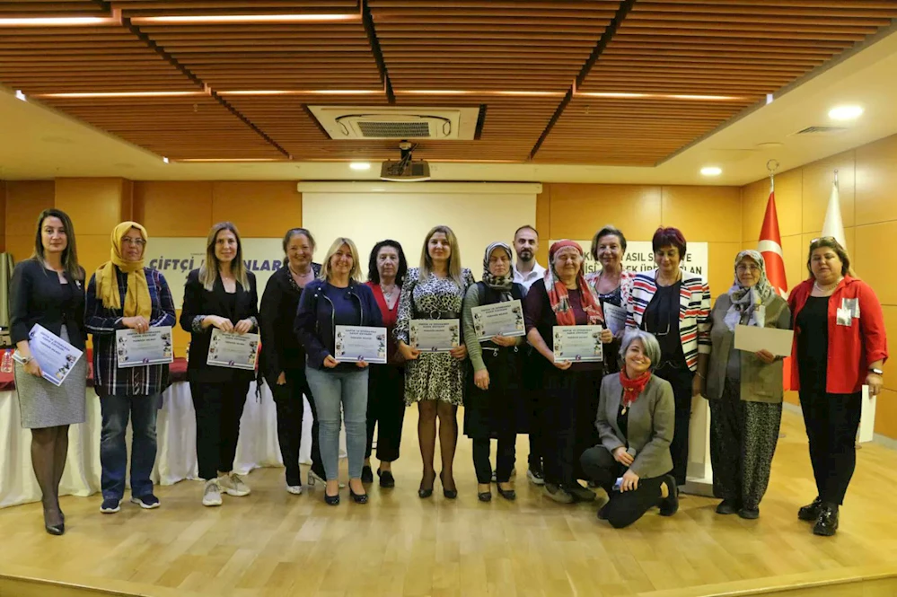 Toplantı sonrasında zirveye katılan çiftçi kadınlara belgeleri verildi. /VARIŞ HABER