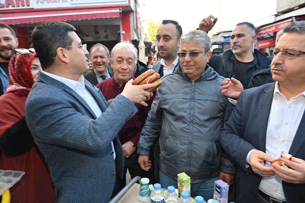 Antalya’nın dört bir yanını karış karış gezen Cumhur İttifakı’nın Antalya Büyükşehir Belediye Başkan adayı Hakan Tütüncü, acıkınca yol üzerindeki satış tezgahından tüm simitleri satın alarak, önce çocuklara sonra da hemşehrilerine ikram etti. Ayak üstü hem simitler yendi, hem de sıcacık sohbetler gerçekleştirildi.