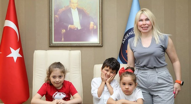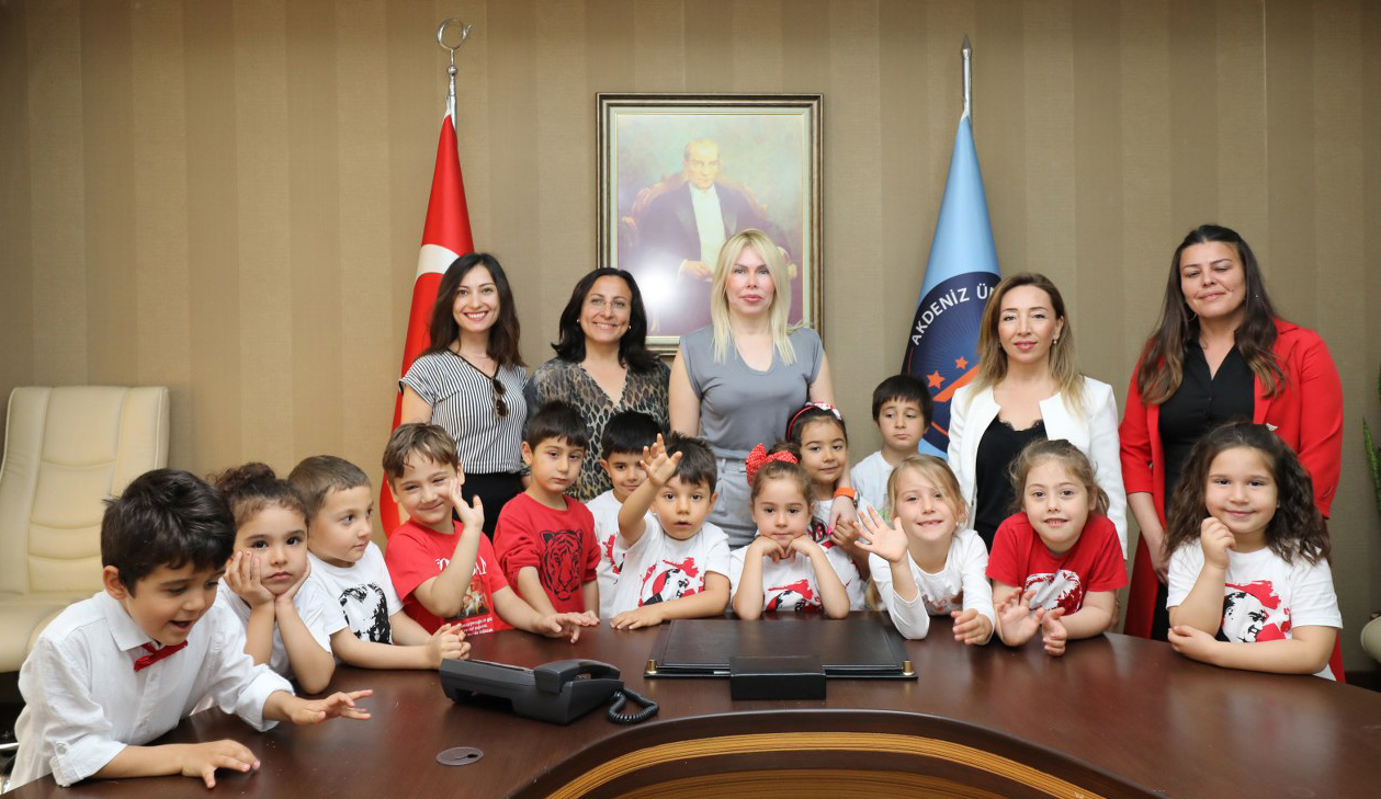 Akdeniz Üniversitesi (AÜ) Rektörü Prof. Dr. Özlenen Özkan, 23 Nisan Ulusal Egemenlik ve Çocuk Bayramı kapsamında çocuklarla bir araya geldi. Rektör Özkan makamını çocuklara devrederek bayramlarını kutladı.