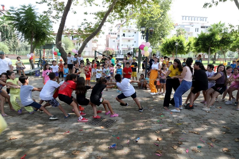 Öğrencilerin yılsonu etkinliğine Manavgat Belediye Başkanı Şükrü Sözen’i temsilen başkan yardımcısı Mustafa Ceylan ve birim müdürleri de katıldı. Çocuklar, ilk olarak dönem içerisinde yaptıkları birbirinden güzel resimleri sergiledi. Dolu dolu aktivitelerle geçen yılsonu etkinliğinde çuval yarışı, kovaya su doldurma yarışı, balon patlama yarışı, halat yarışı, çember kapma yarışı ve su savaşı oyunları oynandı. Çocukların su savaşı oyununa Manavgat Belediyesi Başkan Yardımcısı Mustafa Ceylan ve belediye çalışanları da katıldı. Çocukların su savaşı yapması ise neşeli anlara sahne oldu. Su savaşının ardından öğrencilere dondurma ikramı da yapıldı. Çocuk Kültür Merkezi öğrencilerinin dönem boyunca verimli bir eğitim aldığını belirten başkan yardımcısı Mustafa Ceylan, yılsonu etkinliğinin öğrencilere moral ve motivasyon verdiğini söyledi. Başkan Yardımcısı Ceylan, “Çocuk Kültür Merkezi’mize gelerek eğitim ve öğretim hayatına katkı yaptığımız öğrencilerimiz bugün muhteşem bir etkinlik düzenleyerek gönüllerince eğlendi. Belediye Başkanımız Sayın Şükrü Sözen, çocuklarımızın her zaman yanında olmaya özen gösteriyor. Bizler de onların eğlencesine ortak olarak mutluluğu paylaştık. Tüm çocuklarımıza eğitim hayatlarında başarılar diliyor, etkinlikte emeği geçen çalışma arkadaşlarımıza Belediye Başkanımız Sayın Şükrü Sözen adına teşekkür ediyorum” dedi.