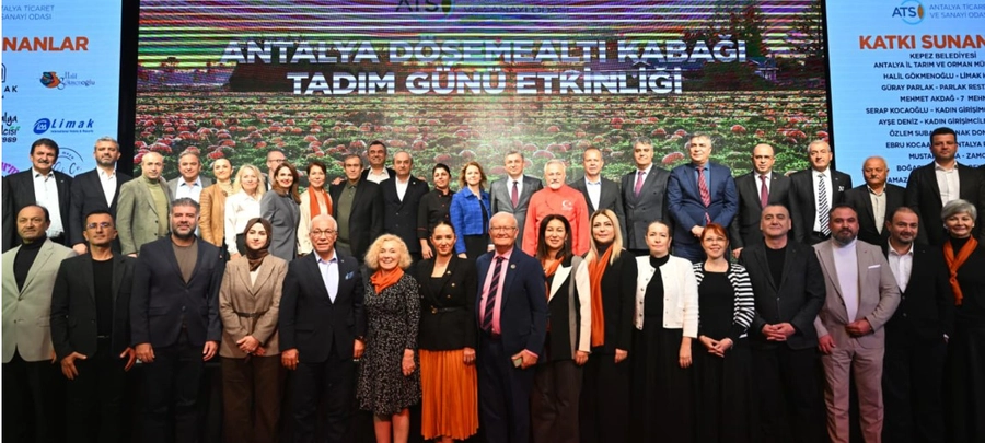 Antalya Ticaret ve Sanayi Odası (ATSO) tarafından Türk Patent ve Marka Kurumu’na coğrafi işaret başvurusu yapılan Antalya Döşemealtı Kabağı, Vali Hulusi Şahin ve eşi Ebru Şahin’in katılımıyla düzenlenen programda tanıtıldı.