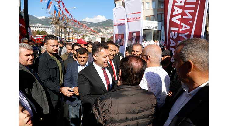 Milliyetçi Hareket Partisi Alanya İlçe Başkanlığı Seçmen İletişim Merkezi’nin açılışı Saray Mahallesi Salı Pazarı karşısında büyük bir coşkuyla gerçekleştirildi. Programa; Alanya Belediye Başkanı ve Cumhur İttifakı Alanya Belediye Başkan Adayı Adem Murat Yücel, Kültür ve Turizm Bakanı Mehmet Nuri Ersoy, önceki dönem Dışişleri Bakanı ve AK Parti Antalya Milletvekili Mevlüt Çavuşoğlu, MHP MYK Üyesi Hüseyin Yıldız, AK Parti MKYK Üyesi Kuddusi Müftüoğlu, MHP Antalya Milletvekili Hilmi Durgun, AK Parti Antalya Milletvekili Tuba Vural Çokal, MHP Antalya İl Başkanı Onur Temel, MHP Alanya İlçe Başkanı Mustafa Sünbül, AK Parti Alanya İlçe Başkanı Mehmet Şarani Tavlı, BBP Alanya İlçe Başkanı Mehmet Uğur, Anadolu Birlik Partisi Alanya İlçe Başkanı Şükrü Güneri, Ülkü Ocakları Antalya İl Başkanı Ferhat Aksoy, siyasi partilerin kadın ve gençlik kolları başkanları ile yönetimleri, siyasi partilerin yönetim kurulu üyeleri, sivil toplum kuruluşları ile oda ve dernek başkanları, belediye meclis üyeleri ve binlerce vatandaş katıldı.