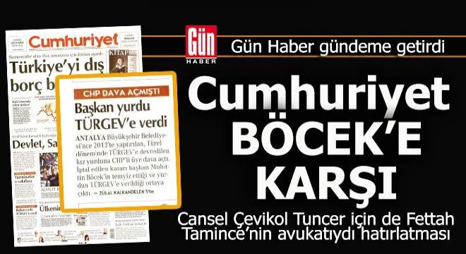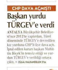 Gün Haber Yazarı Dursun Gündoğdu'nun dün köşesinde dile getirdiği, Antalya'daki yurt binasının Danıştay'dan dönen tahsisi ile ilgili kararın büyükşehir belediyesi tarafından temyiz edildiği haberi büyük ses getirdi. Bugün de Cumhuriyet Gazetesi konuyu birinci sayfasından verdi.