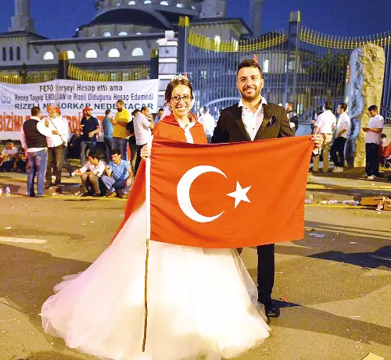Her yaştan vatandaşın katıldığı demokrasi nöbetleri, renkli görüntülere de sahne oldu. Nikâhtan çıkıp nöbetlere katılan gelin-damat sayısı bini aştı.