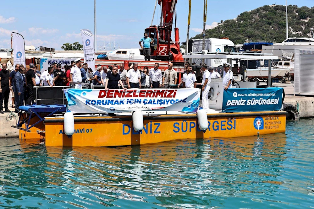 Antalya’da deniz çöpleriyle mücadele kapsamında Büyükşehir Belediyesi tarafından alınan ABB Mavi 07 isimli deniz süpürgesi deniz yüzeyindeki fiziksel çöpleri toplayacak. Güneş enerjisinden de faydalanan deniz süpürgesi, su altındaki yosunları biçebiliyor, polen, müsilaj ve petrol türevi atıkları da toplayabiliyor. /VARIŞ HABER