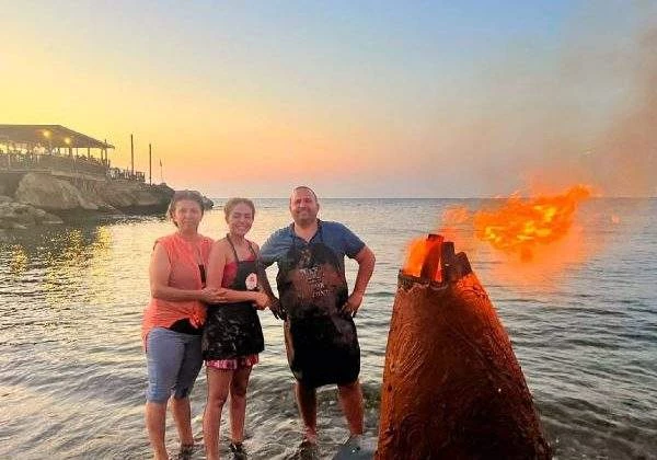Tasarımcı sanatçılar, deniz yüzeyinde yakılan ateşte şekillendirilmiş çamuru pişirdi, rengârenk objeler üretildi.