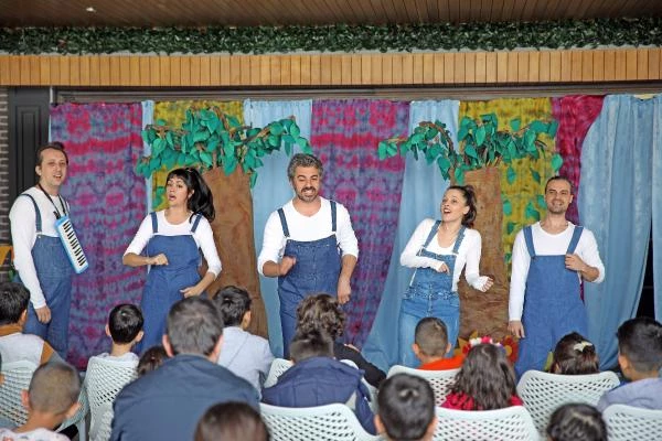 Antalya’nın Alanya ilçesinde belediye tiyatro ekibi ilçede misafir edilen depremzede çocukların konakladığı otellere giderek ‘Şarkıyla Sallanan Salıncak’ adlı oyunu sahneledi ve çocuklara moral oldu.