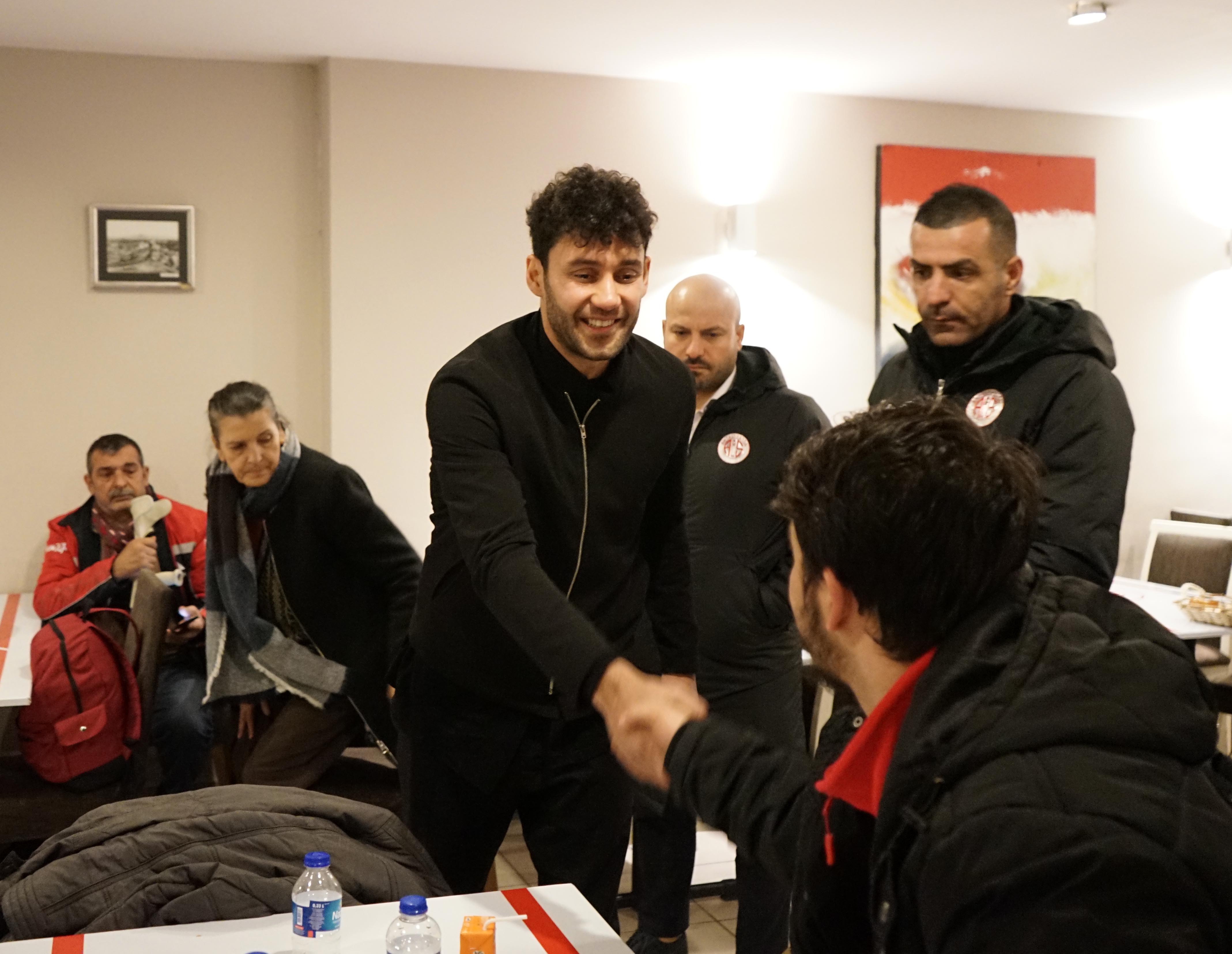 Antalyaspor futbol takımı kaptanı Veysel Sarı da tesislere gelerek depremzedelerle yakından ilgilendi. Aralarında ailelerin ve sporcuların da bulunduğu depremzedelerle tek tek ilgilenen ve hatırlarını soran Veysel Sarı, oyun alanında çocuklarla bir süre oyun da oynadı. Öte yandan Antalyaspor futbolcuları da kendi aralarında bir kampanya yaparak deprem bölgesine 2 tır su, 1 tır un ve 1 tır da çocuklar için ürünler ve hijyen malzemesi gönderdi. Kaptan Veysel Sarı, yardımlarının devam edeceğini söyledi. /VARIŞ HABER