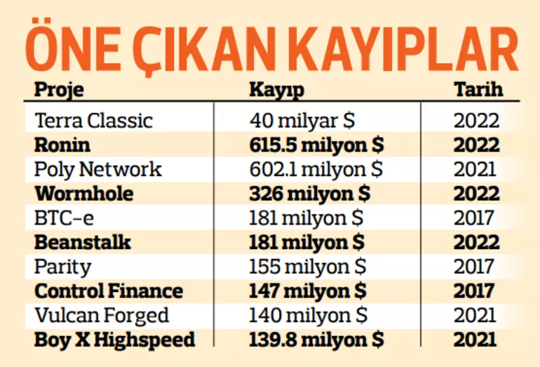 Kripto para piyasasında dolandırıcılık haberleri, sektörde yasal zeminin tam anlamıyla yaratılamamasının da etkisiyle her geçen yıl artıyor. Son yıllarda soyguncuların yeni gözdesi kripto paralar olurken; yılın ilk yarısında 1.8 milyar dolarlık kripto para çalındığı belirtiliyor. Bugüne kadar dolandırıcılık, izinsiz giriş ve çöküş gibi nedenlerle toplamda 2 bin 861 proje, 45 milyar doları aşan kayıplara neden oldu.
