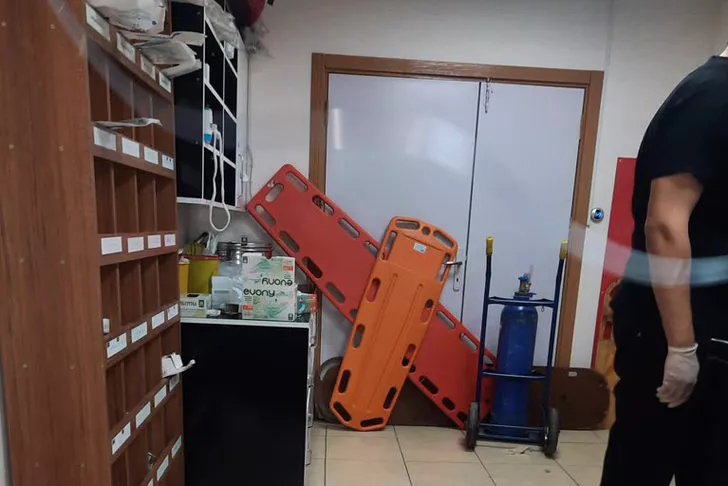 Ölen hastanın bir yakını polisin belinden silahını almaya çalıştı. Çıkan arbede sırasında ateş alan tabancadan çıkan mermi duvarı deldi.