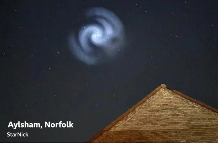 “Fotoğraftaki spiral şeklindeki ışık, büyük olasılıkla 24 Mart 2025'te Cape Canaveral'dan fırlatılan SpaceX Falcon 9 NROL-69 roketinden kaynaklanıyor. Bu, roketin ikinci aşamasının yakıt boşaltması sırasında dönmesiyle oluşuyor."