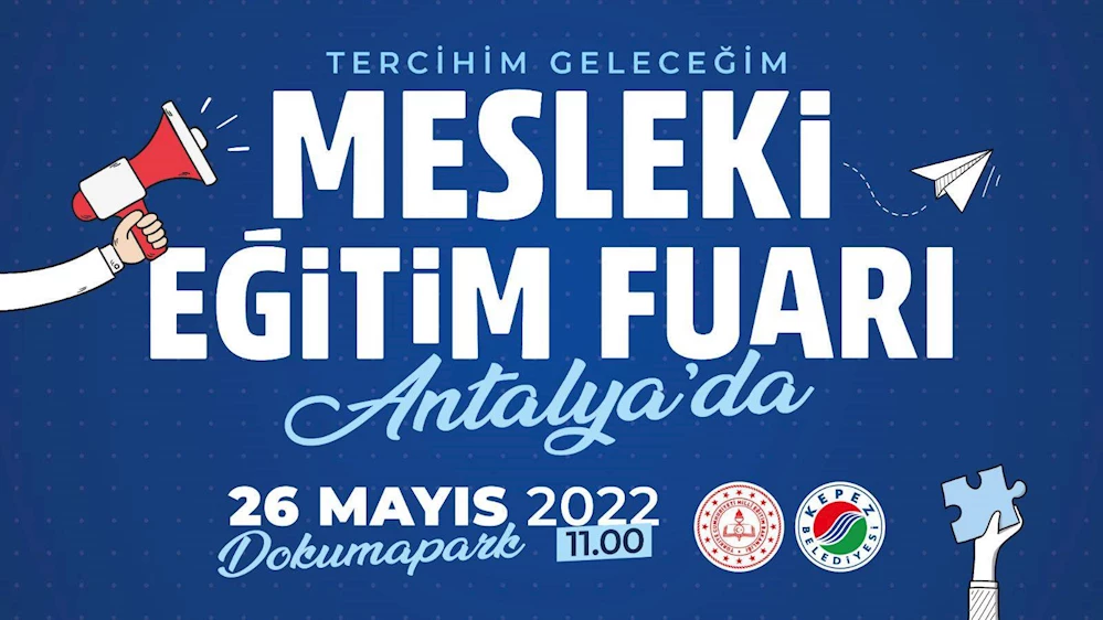 Kepez Belediyesi’nin katkıları ile Antalya İl Milli Eğitim Müdürlüğü tarafından düzenlenecek ‘Mesleki Eğitim Fuarı’ 26-27-28 Mayıs’ta Dokumapark’ta kapılarını açıyor.