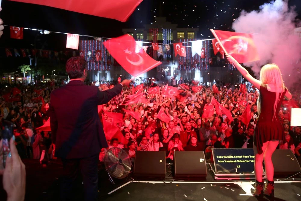 Yaklaşık 1.5 saat süren araç korteji Döşemealtı Kent Meydanı’nda sona erdi. Burada binlerce kişi Cumhuriyet Bayramı coşkusunu yaşamak için alanı doldururken, sahneye ilk olarak DJ Cenk Bayrak çıktı. Alanı dolduranları çaldığı şarkılarla coşturan Bayrak’a ışık efektleri eşlik etti. Ünlü DJ’nin ardından bu kez sahne alma sırası Aleyna Tilki’ye geldi. Ünlü sanatçı sahneye çıktığında kent meydanında ki coşku adeta tavan yaptı. En sevilen şarkı ve türkülerini Döşemealtı halkı için seslendiren genç sanatçı, “Böylesine büyük bir bayram da bu kadar coşkulu insanlarla Cumhuriyetimizin doğum gününü kutlamaktan onur duyuyorum. Çok heyecanlıyım, Cumhuriyet Bayramımız kutlu olsun” diye konuştu.