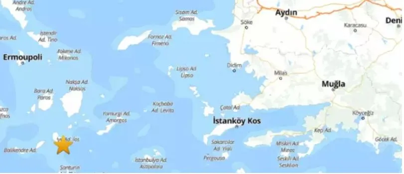 Depremin, Muğla'nın Bodrum ilçesine 171,26 kilometre mesafede olduğu ve 6,64 kilometre derinlikte meydana geldiği belirlendi.
